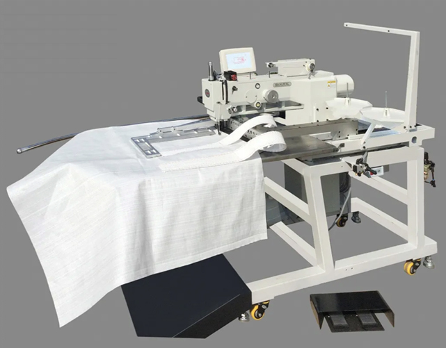 性能優(yōu)點: 可根據(jù)客戶要求縫制30*40公分范圍內(nèi)長度吊帶,電腦編程,控制。無需熟練技術(shù)也能完成縫紉要求。保證高質(zhì)量和卓越的鎖縫式線跡的質(zhì)量。采用特大六倍量旋梭,梭心線量大,縫制效率高,特大容量的梭心使縫紉周期增長,減少了一倍的更換底線的次數(shù),提高了工作效率。