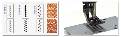 特點(diǎn):全新上下送料設(shè)計(jì)可實(shí)現(xiàn)一步兩點(diǎn)曲折縫紉;采用半回轉(zhuǎn)大型擺梭、減少換底線次數(shù)實(shí)現(xiàn)粗線、厚料、裝飾縫紉;適宜于沙發(fā)、座墊、鞋、皮革制品曲折縫、拼縫、裝飾縫。