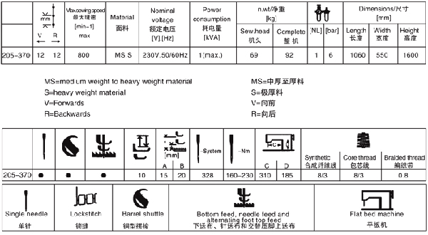 特點本機是雙星厚料機系列中的大力士,采用綜合送料方式和圓筒形縫臺,送料力量強勁穩(wěn)定,能輕易車縫多層厚重物料,線跡精準美觀。采用進口大型特種擺梭,梭芯線量大,縫制效率高。梭芯繞線裝置位于機頭上部,壓腳提升時可達20毫米,可適用于縫制手提袋的手把、棒球手套、運動器材、安全袋、帳篷、座墊、馬鞍、箱包等厚料和中厚料物品。